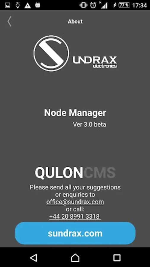 Sundrax Node Manager App for Android is a utility to record GPS coordinates of lamp posts equipped with individual lighting control nodes. The app is used as a support for initial registration of nodes in QULON Street Lighting Management software suite.