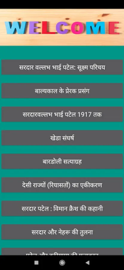 In this app we include full life journey of India's Iron man Sardar vallabh bhai Patel. In this app his all inspirational and motivational stories and journey of India's freedom..... The topis which you can read..