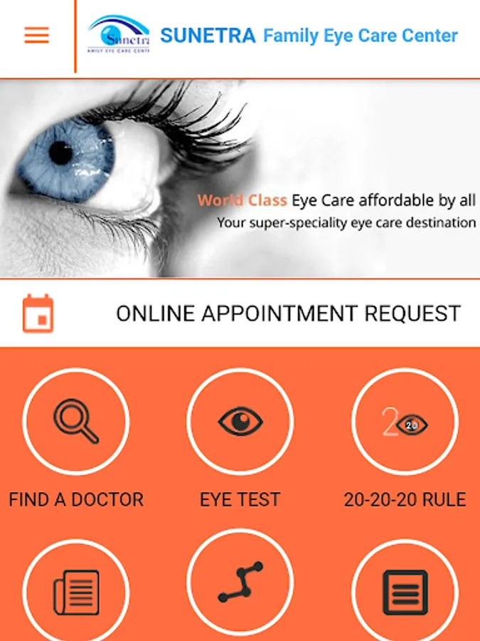 Sunetra Family Eye Care Centre offers various Ophthalmic services along with EyeTests facility using the app fonr patients having eye disorders. Through this app one can book online appointments based on Ophthalmology Doctors. Facilities like Set Reminder, Upload Prescriptions, News & Events with video links are made available for knowledge purposes.