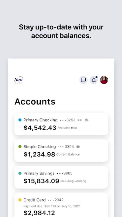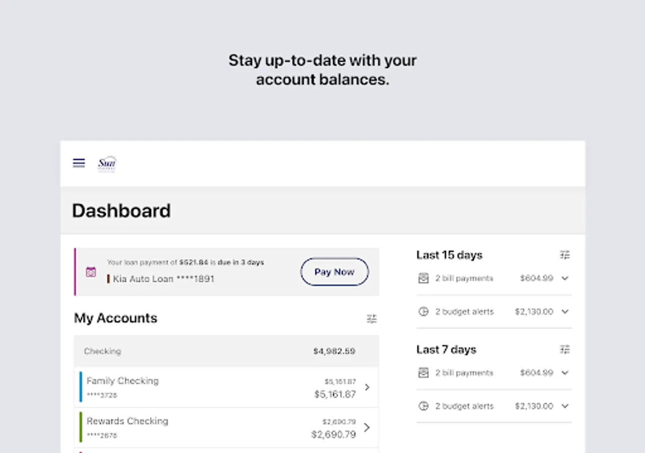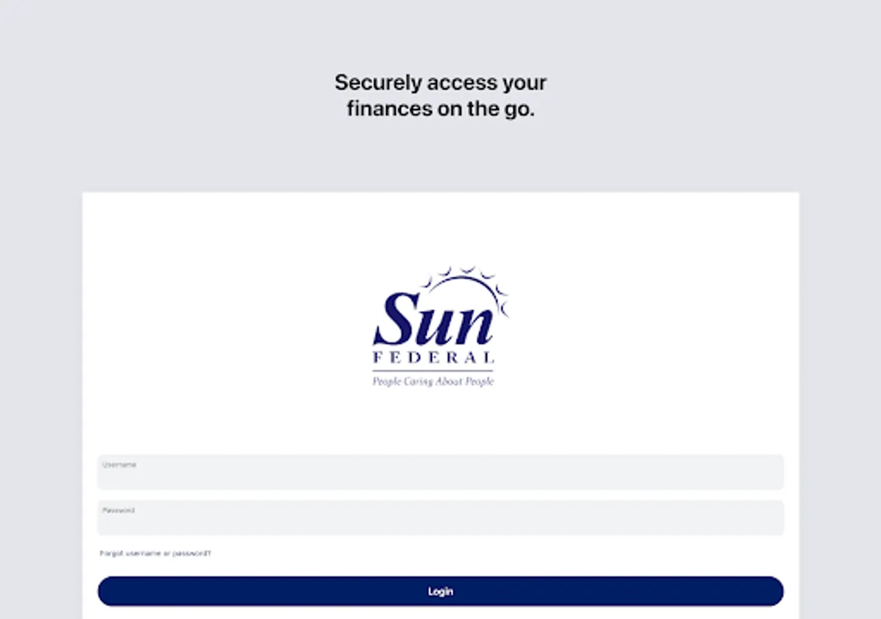 Download Sun Federal CU’s mobile banking app for convenient and secure 24/7 access to your account balances and more! It’s quick, safe and easy to use. Just use your Sun Federal online banking username and password to login.