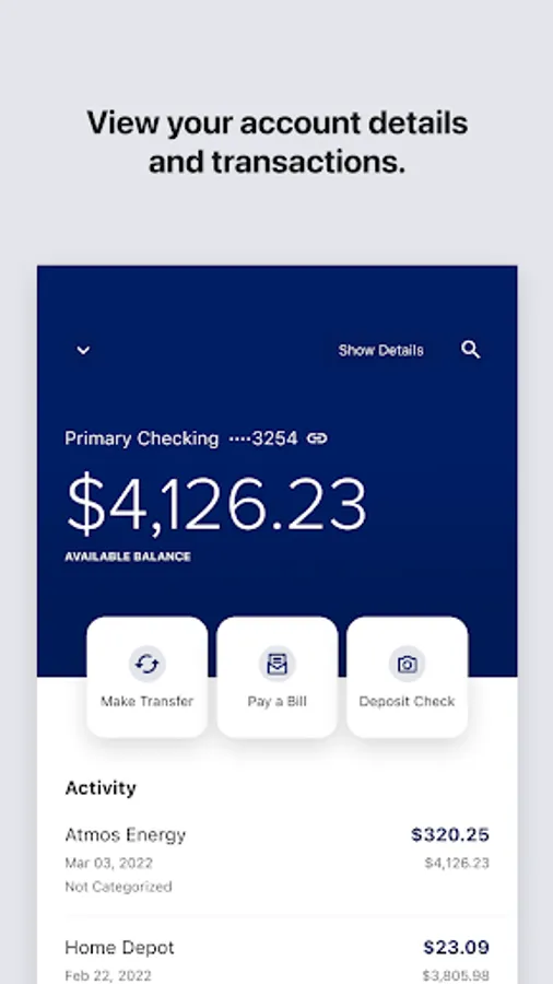 • Mobile Check Deposit (deposit checks using the device’s camera)