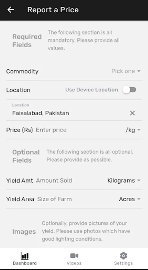 The application enables comparison of current officially reported commodity prices across markets and overtime in Pakistan. The application also enables comparison of commodity prices from the large dataset of officially reported wholesale-markets with what farmers report they are receiving in those market areas thus ensuring transparency; highlighting margins; eliminating inefficiencies; and, unleashing the full potential of agricultural markets for inclusive growth.