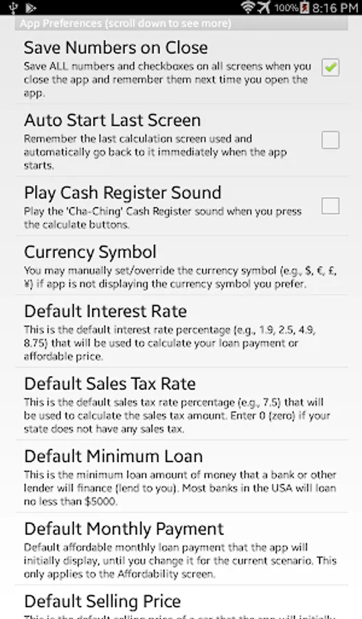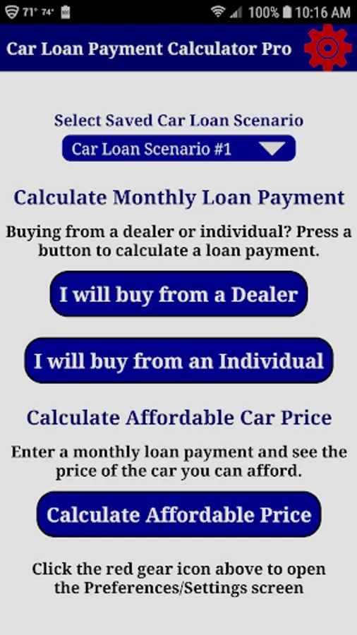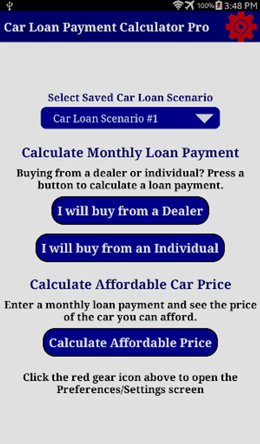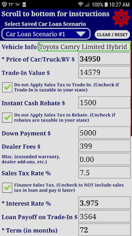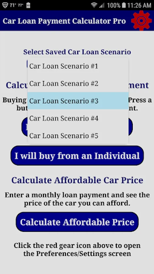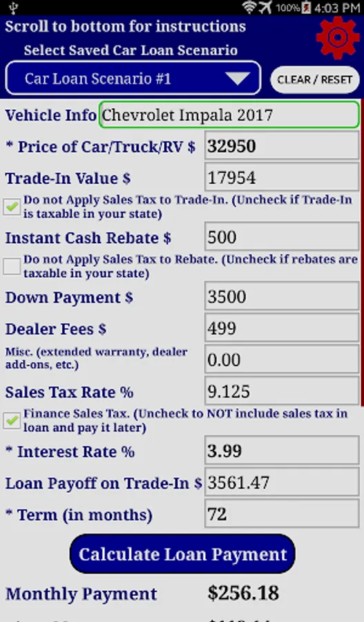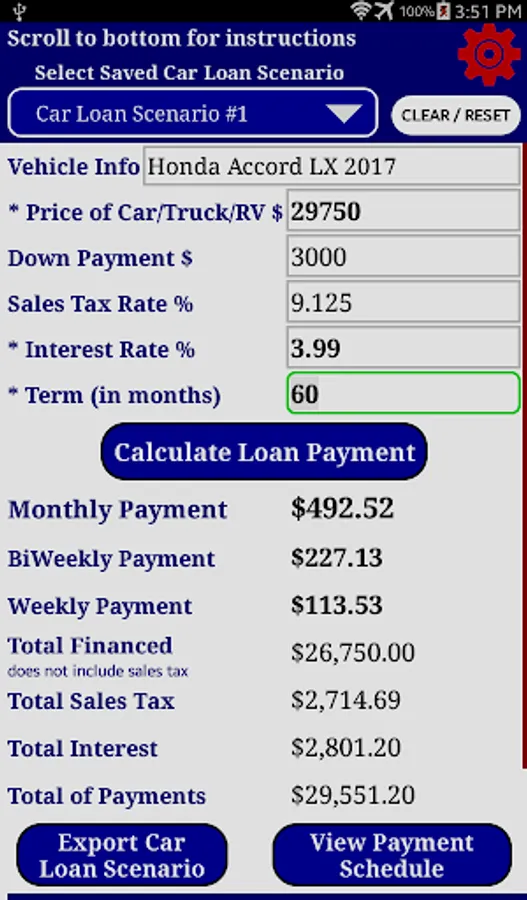 NEW FEATURE: Users can now save multiple car loan scenarios. You can save 5 different scenarios per calculation screen for a total of 15 scenarios.