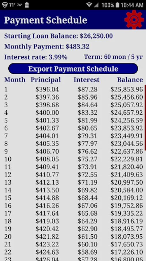 Exporting of the Car Loan Data: You can now export the data and then send it on a Text message or an Email message. Just press the Export Data button and the app will ask if you want to send it on an email or text. You then press the email or text button and app will paste all of the data into the body of the message.