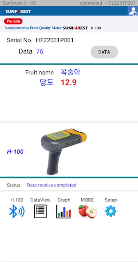 This is SUNFOREST Portable Nondestructive Fruit Quality Meter H-100 communication applications.