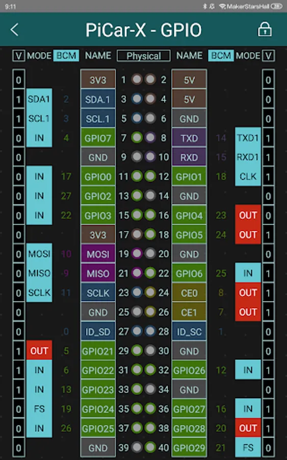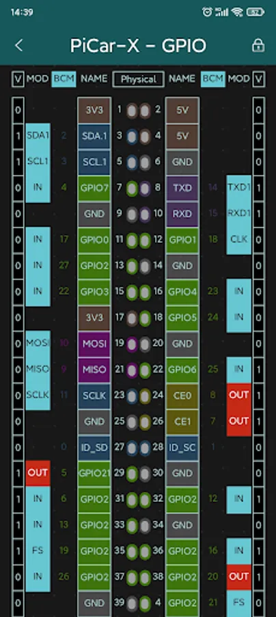●GPIO page: A colored pin diagram showing GPIO status and the ability to change input/output modes and levels on your own.