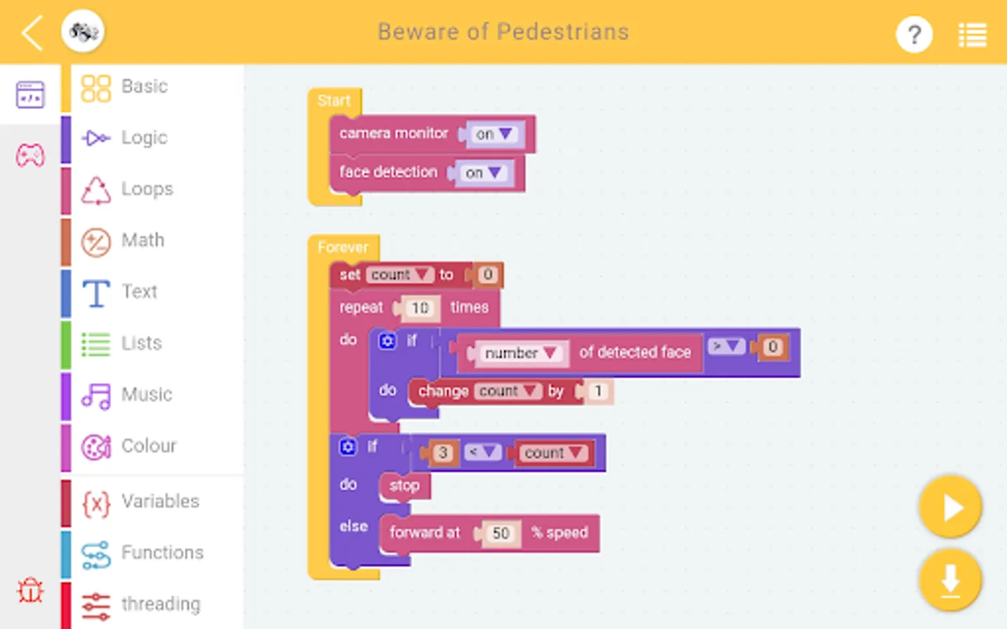 EzBlock Studio is an App for programming and controlling SunFounder Raspberry Pi robots, which allows beginners (students) to quickly get started with Raspberry Pi robot programming. It has built-in TTS, camera recognition, remote control, music/sound effects, and sensor control functions.