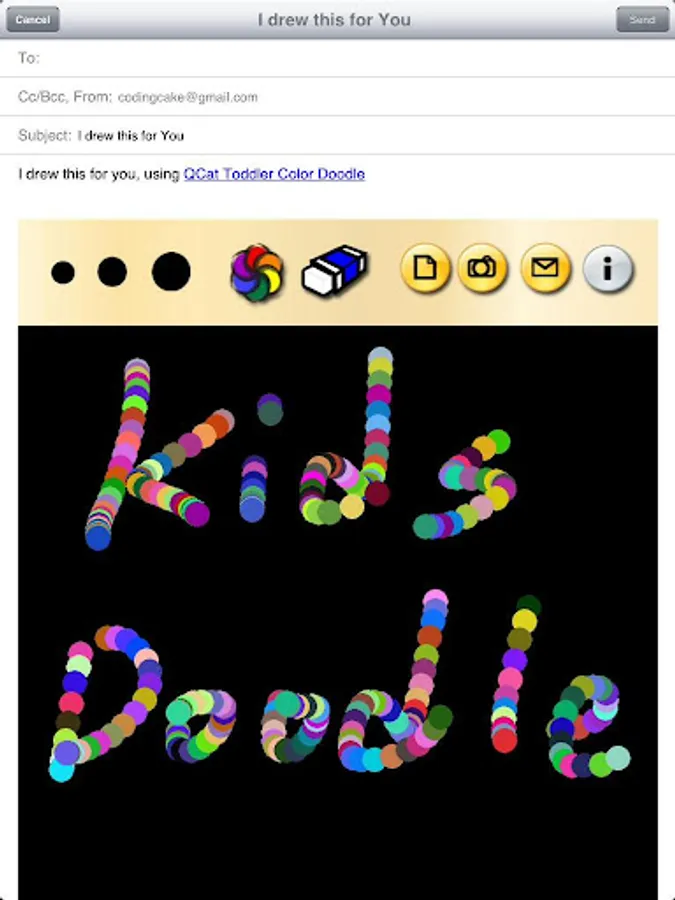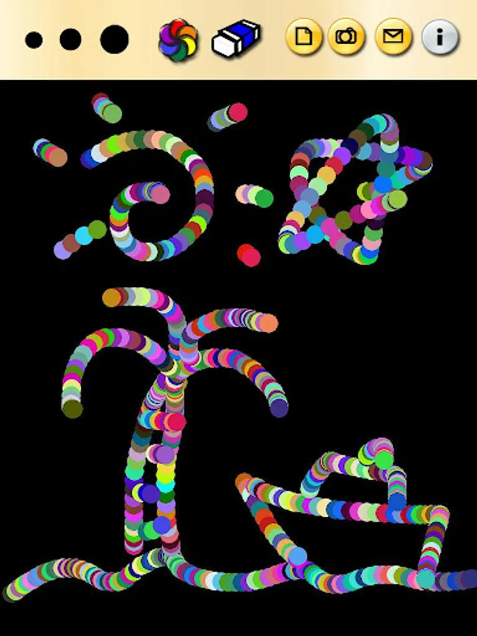 You don't need to select colors and brushes. It has only three line thickness to choose. Of course with an eraser tool to fixed your scribbles, or you can simply clear all by one button. And you can save or mail your paintings if you love them very much and want to share with somebody.