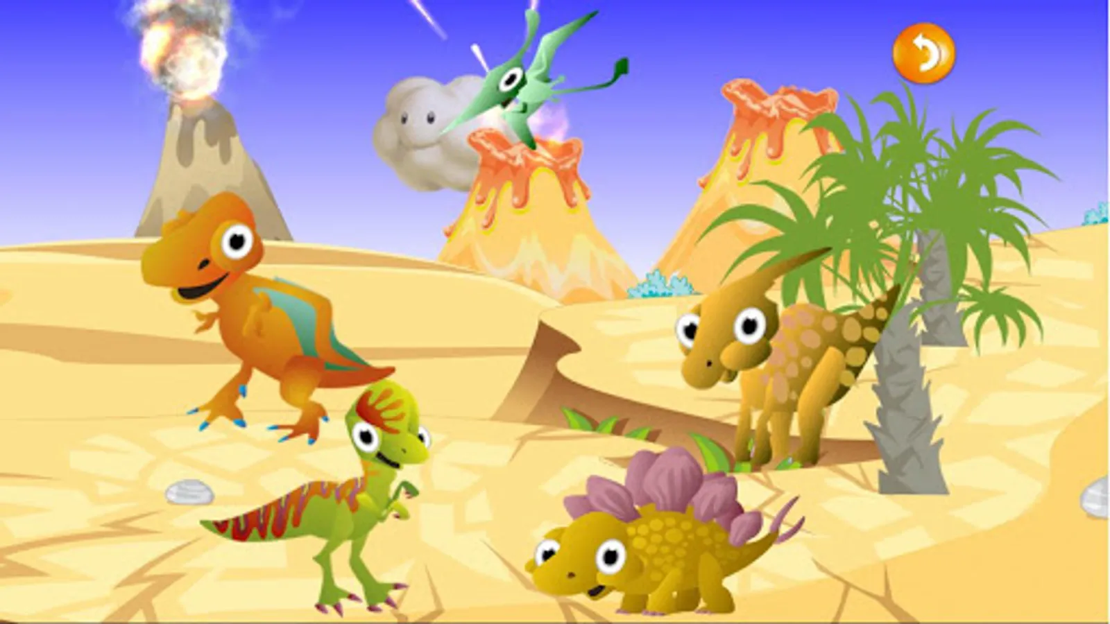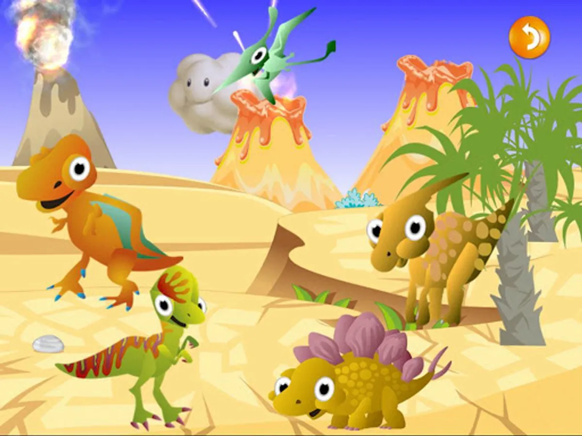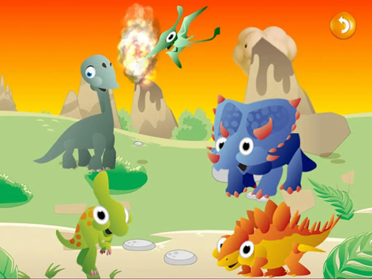 Am I back to the Jurassic or Cretaceous? so many dinosaurs! Look! Distant volcanos is erupting!! funny, colorful and beautiful for player. user can move the dinosaurs, touch or tap them to hear sound and see animation. Every touch might be have different animation.