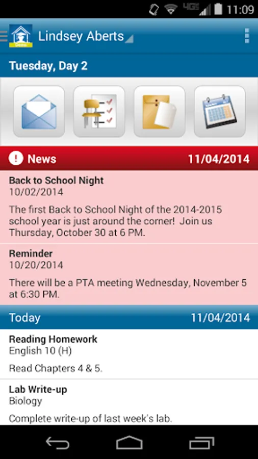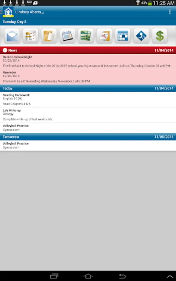 Alerts: Parents will be alerted of important notifications right on the home screen. They can receive unique alerts for things such as: