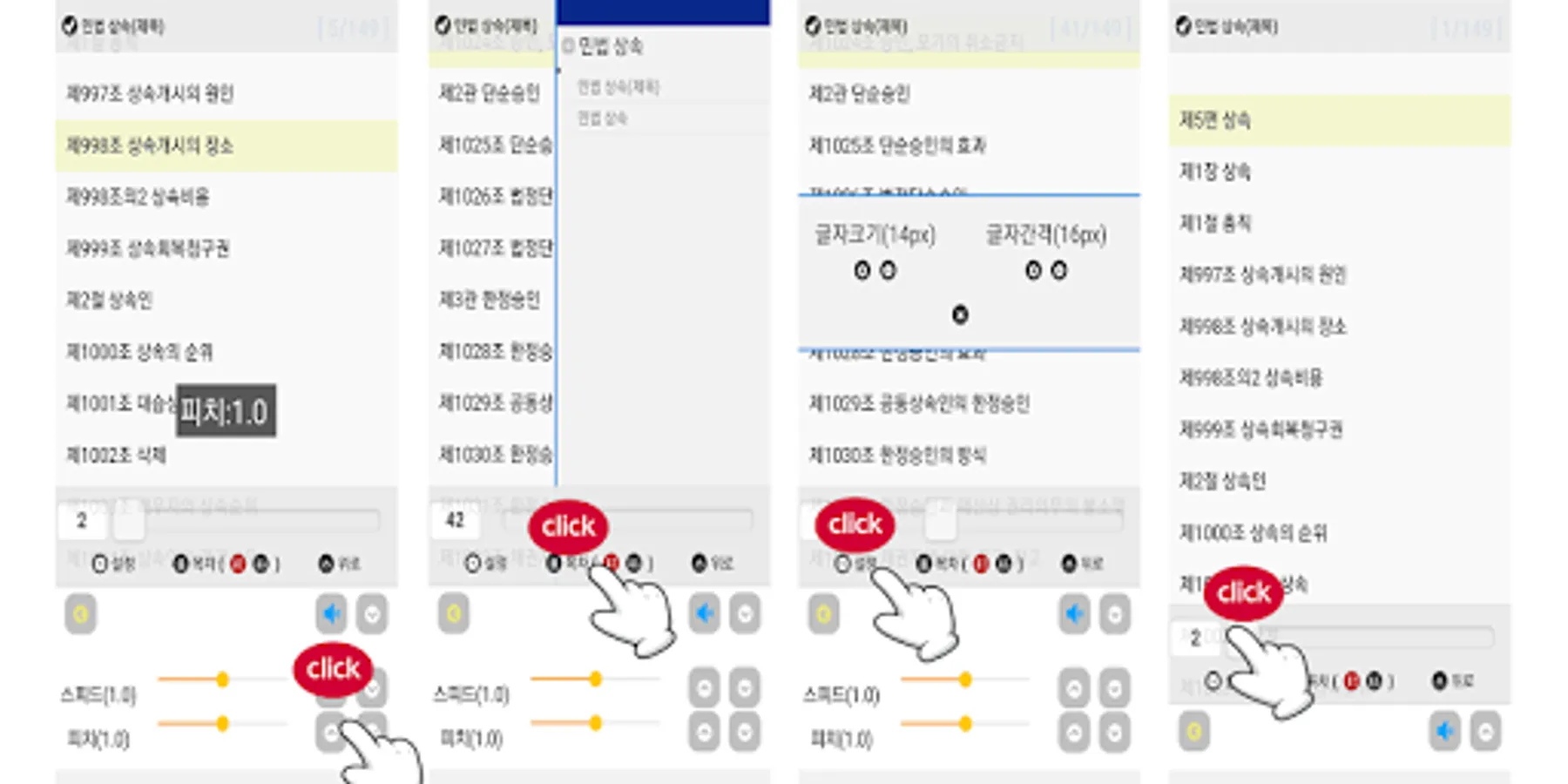 읽기를 원하는 문장으로 이동하여 더블 클릭을 하면 그 문장부터 읽기 가능합니다.