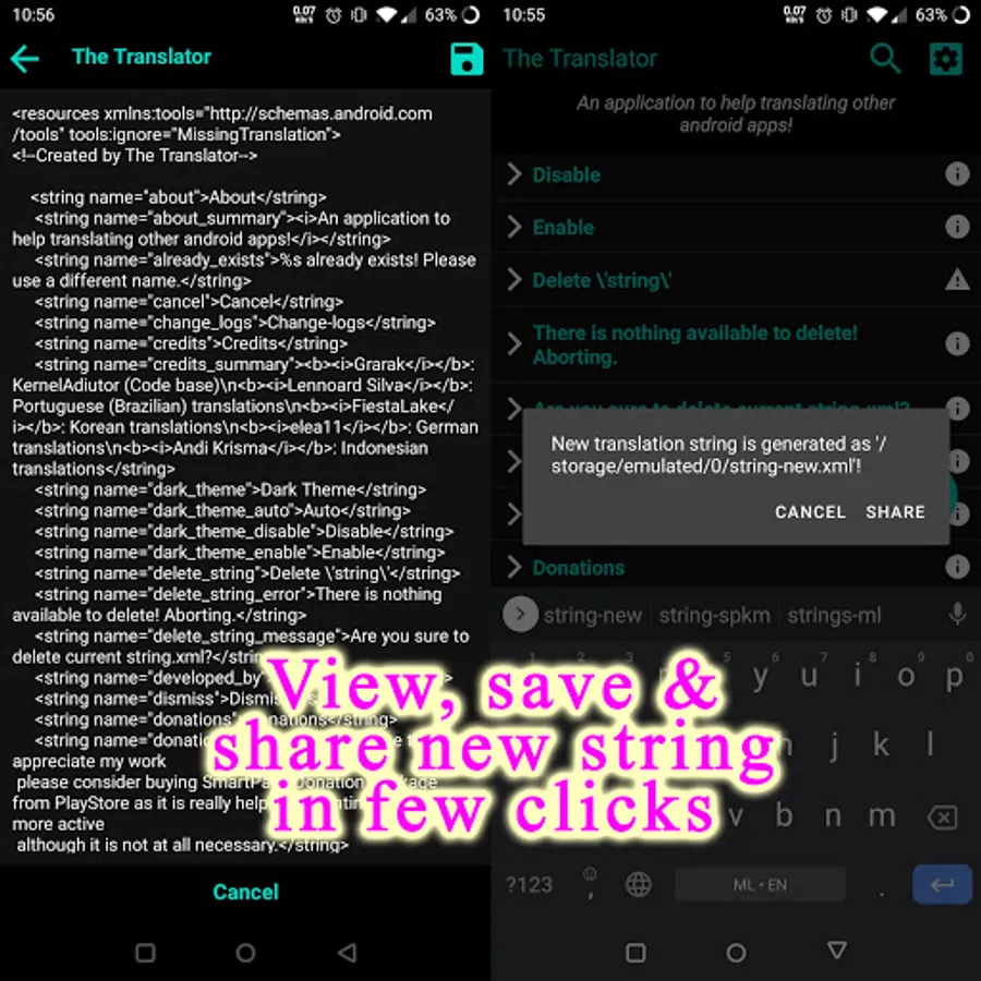 🔸 Directly share (after saving) strings with the developers.