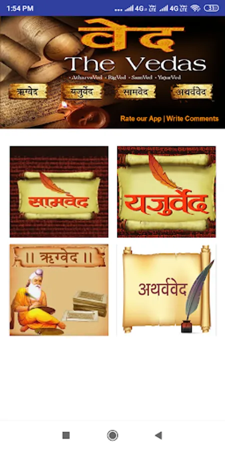 The app comprises of Rigveda, Yajurveda, Samaveda, Atarvaveda. This app will bring you very good experience while reading this Hindu Vedas in Hindi.