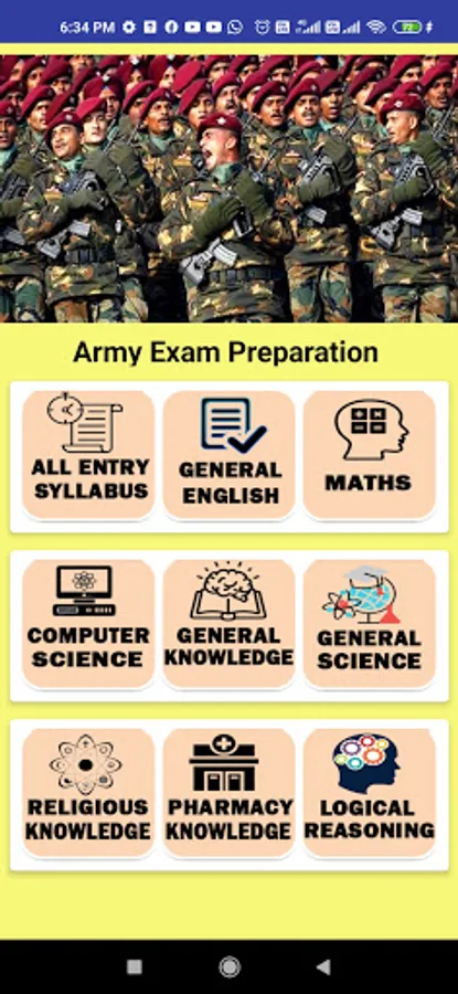The Indian Army Soldier General Duty (GD), Soldier Technical, Hav Surveyor Auto Carto, Sepoy Pharma in medical corps, Soldier Clerk and Store keeper or SKT, Soldier Nursing Assistant, Junior commissioned officer(JCO) Religious Teachers and Trades Man Examination is conducted by the Indian Army. The selection process is carried out along with the physical test. Thus to help the candidates with their written exam preparation, we have introduced our Indian Army all Exam Preparation App.