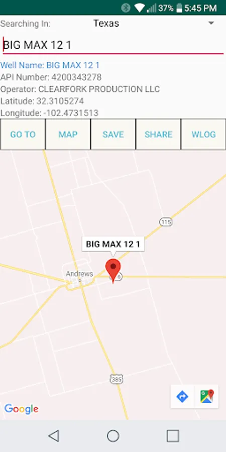 Go To Well allows users to search oil and gas well locations by well name or API number. Users can view wells on map and navigate to wells. Users can display wells belonging to certain operators on a map or display all surrounding wells on a map.