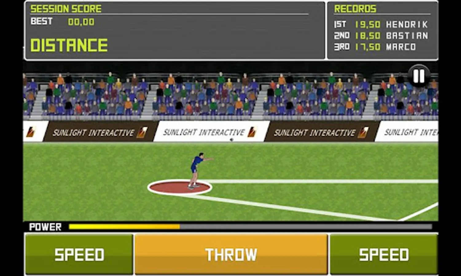 Limitation of the lite version: only play the events '100 Metres', 'Long Jump' and 'Shot Put" in training-mode.