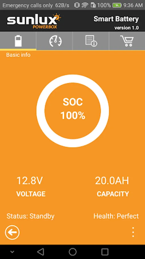 LiFePO4 battery with BLE (Bluetooth low energy) connection.