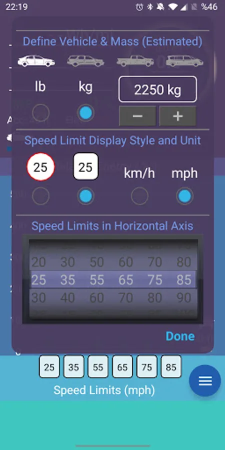 Trying different vehicle types and weight values in Car Energy Meter settings, you can compare total energy consumption between different vehicles.