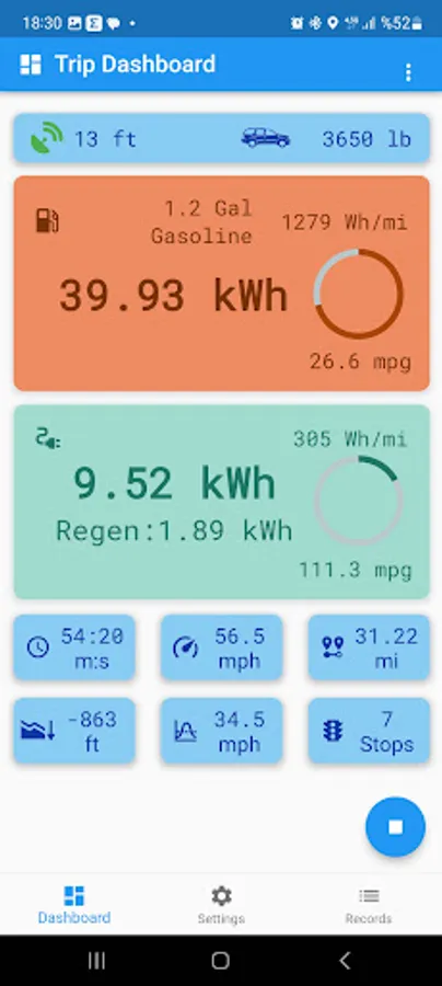 Simultaneous Dual Display: Obtain simultaneous energy readings for both electric and traditional fuel scenarios. Understand, in real terms, the energy implications of driving an electric vehicle versus a conventional one.