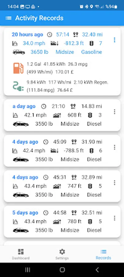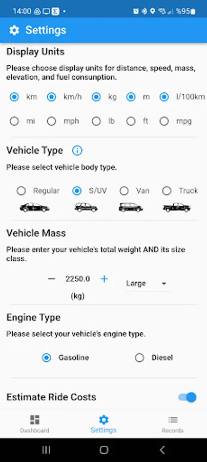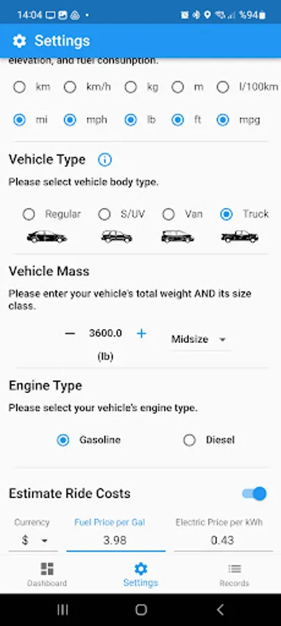 Versatile Units: Whether you're familiar with kWh per miles/kms or prefer mpg and l/100 km, the application allows a seamless transition between units, ensuring a tailored user experience.