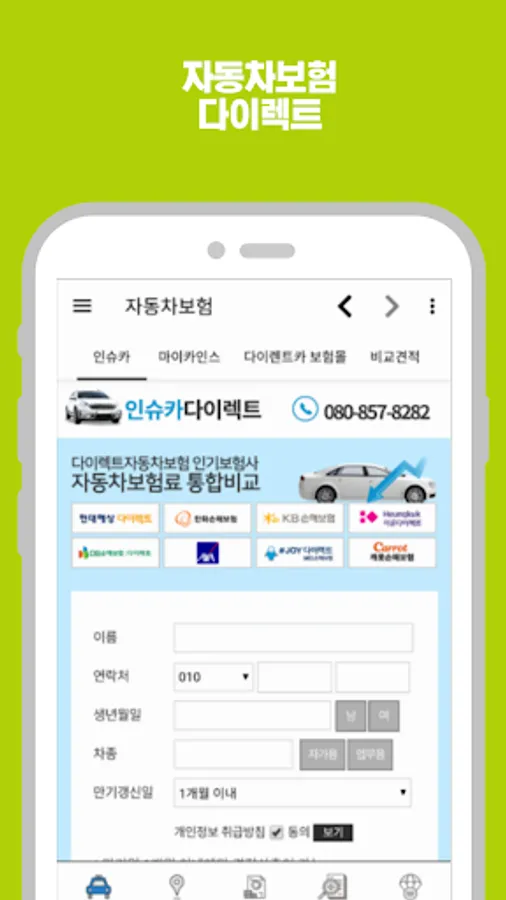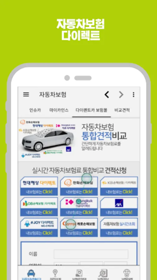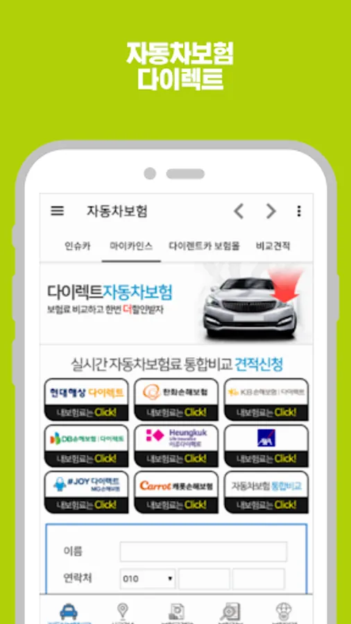 Hyundai Marine Direct / Hanwha Insurance / KB Insurance Direct / Heungkuk Life Insurance Direct / JOY Direct MG Insurance / AXA / Carrot Insurance