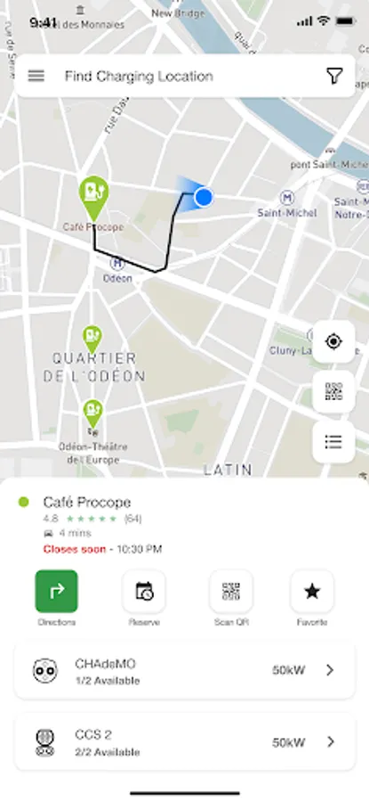 This app helps EV drivers to find out nearby charging stations, navigate, make reservations and initiate charging by scanning QR code. Also, the app shows charging history and reservation history.