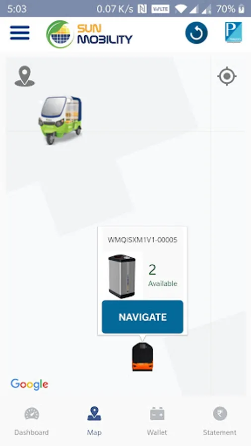 SUN Mobility Driver App connects allows driver to see the State of Charge of the Electric vehicle powered by SUN Mobility Smart Battery system. The App also helps driver locate nearby SUN Mobility Quick Interchange Station to swap battery. This app also displays swap transactions for the vehicle