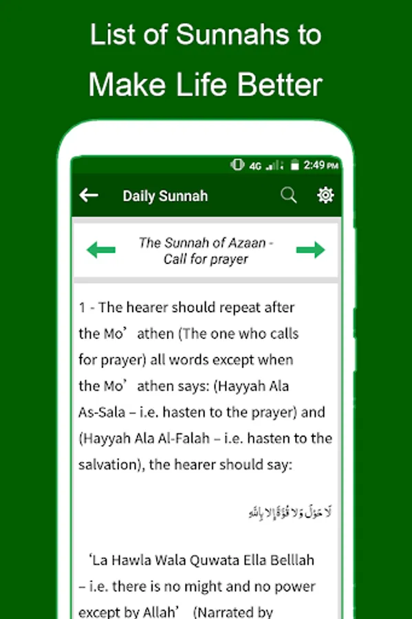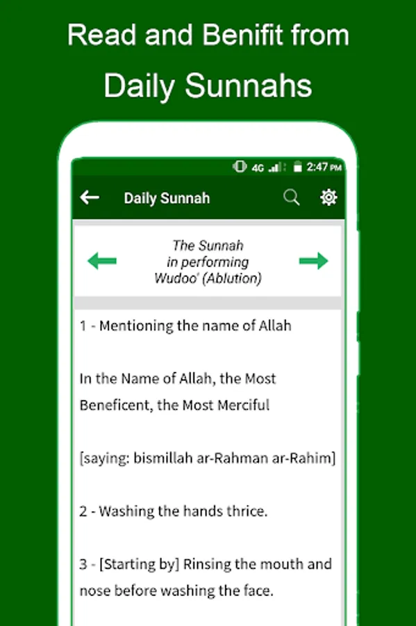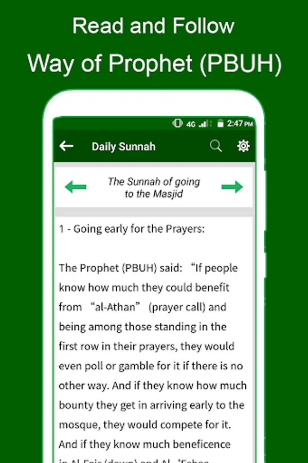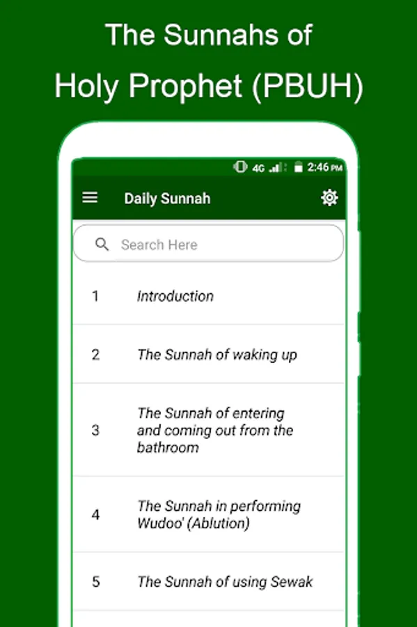 Main topics covered in this app are: How one can gain the love of Allah, Sunnah of waking up, The Sunnah of performing Ablution, The Sunnah in Using Sewak, The Sunnah in Wearing Shoes, The Sunnah in wearing clothes, The Sunnah in going & coming to our homes, The sunnah in going to the mosque, The Sunnah of Athan, The Sunnah of Iqama and So on.