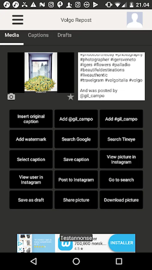 With Volgo Repost you can easily add the watermark to your shots, and repost images and videos from Instagram with the addition of any custom captions. In addition, the application facilitates the addition of tags dedicated to our community, among all #volgoitalia (about 4mil of shared posts)