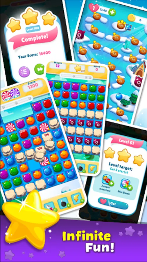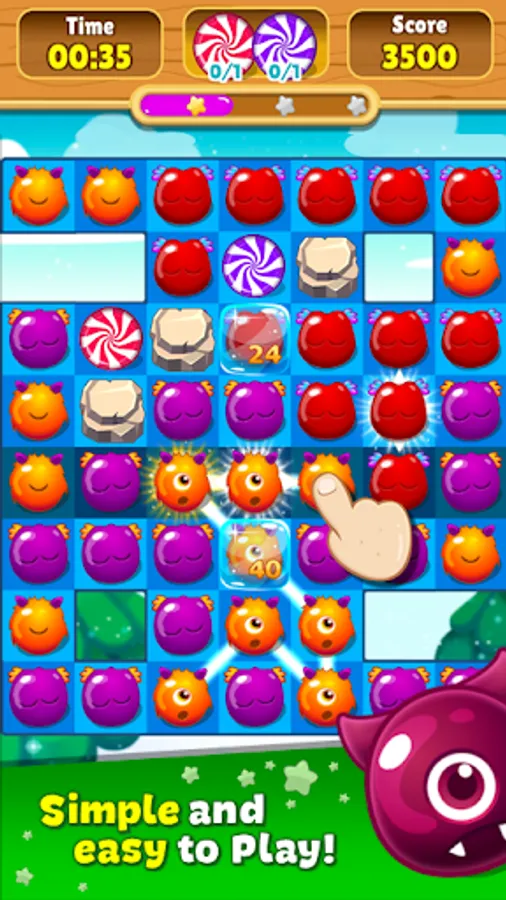 The levels have different objectives, and each one requires making the best decisions. There are levels that require you to earn many points and get stars, others collect candies, help the monsters escape from jelly or chocolates that have them trapped, even prevent the bombs from exploding.