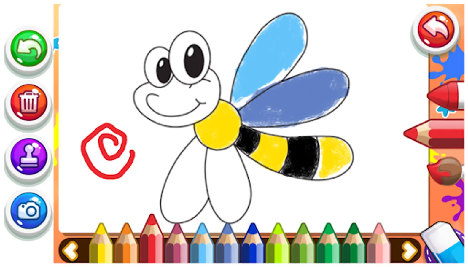 • Coloring and Decorating, with different tools such as brushes, pencils, crayons, watercolors and neon.