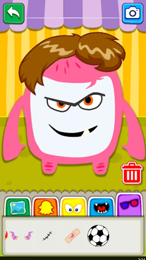 - add eyes, mouth and place accessories (glasses, hats, horns, wigs, bows, among many options).