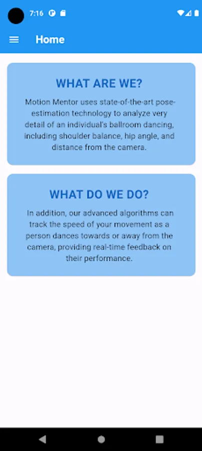 Motion Mentor represents a cutting-edge advancement in the world of ballroom dancing, combining state-of-the-art technology with the artistry and discipline of dance. This innovative system serves as a personalized dance coach, posture analysis tool, and training enhancement platform, tailored specifically for ballroom dancers of all skill levels. At its core, Motion Mentor serves as a virtual dance instructor, delivering real-time feedback and direction to dancers. Powered by advanced AI algorithms, the system scrutinizes each dancer's movements, equilibrium, and posture, supplying constructive insights to refine form, technique, and overall performance.
