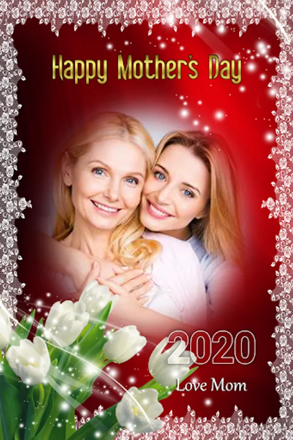 If you want to send Mother's Day Photo Cards to your mom , use this app. to create your own unique photos which have many beautiful frames to select.This new collection of Mother's Day Frames fill with beautiful flower and heart. Say I Love Mom by sending these Happy Mother's Day Photo Frames .