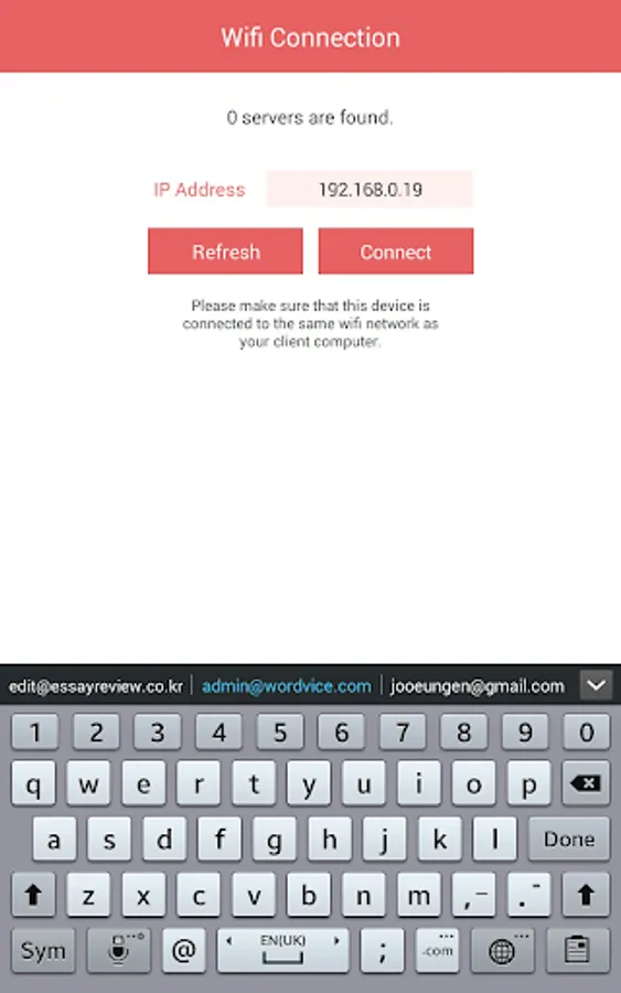 - Automatic server discovery in the same WiFi network.