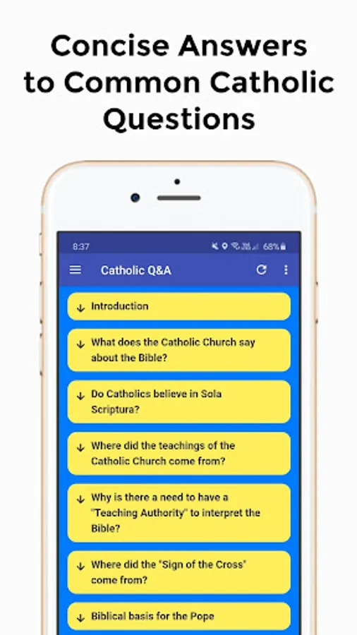 The app is made for Catholics who are seeking answers to questions about their faith. The app is a concise guide meant to provide some direction for further research.