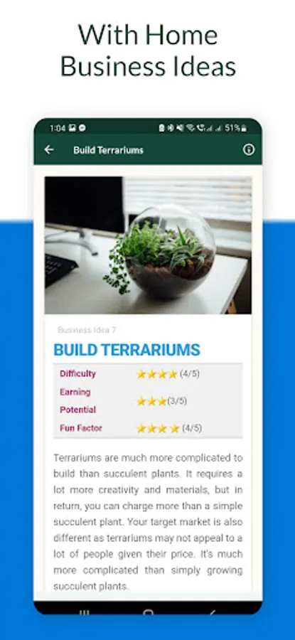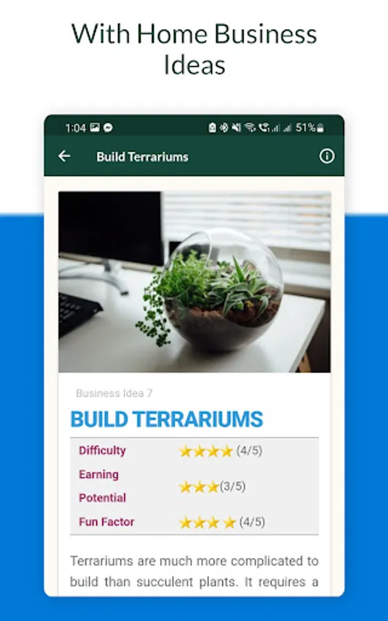 As an added bonus, it also covers in detail one of the more stable ways to make money - thru rental income. It's a good hedge against inflation and it provides a constant cash flow. Most of the wealthiest people are involved in the real estate business. The app also discusses opportunities in investing in the stock market, bonds, and REITs. It also includes 8 exciting home-based business ideas that you can start in any country. Download the app today and explore the many ways you can start a side hustle.