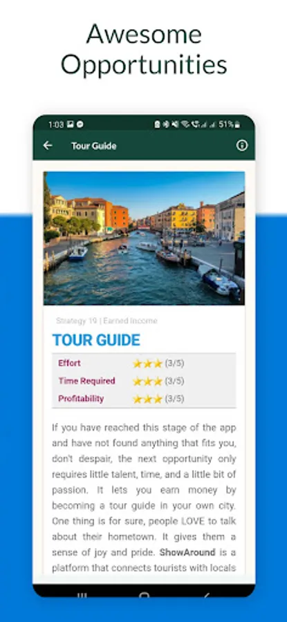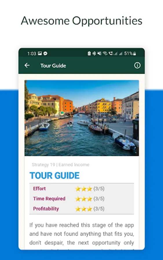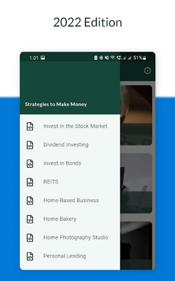 This app presents different side hustles opportunities and strategies to make money this year 2022. It has both online and real-world opportunities including business ideas that you can start from home. It also includes a comprehensive list of legitimate apps and websites to make money from. It also includes unique investing ideas, making money from real estate, and much more.
