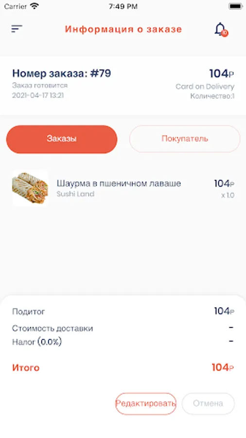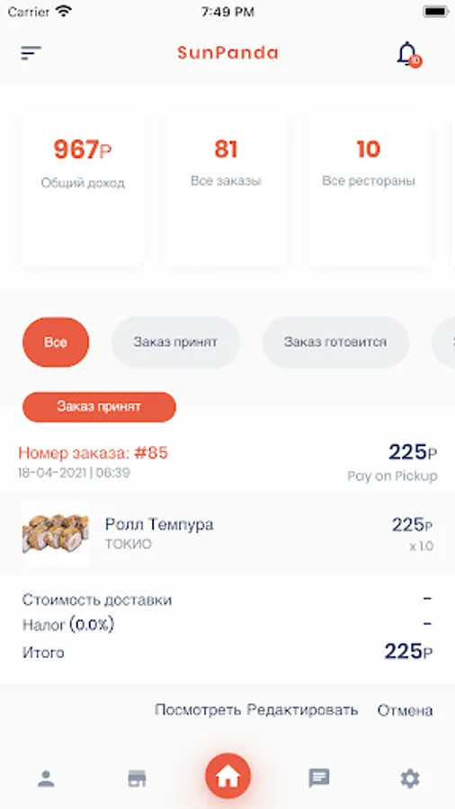 An application for couriers of the SunPanda food delivery service in Kamensk-Shakhtinsk - contact the administration of the service for any questions