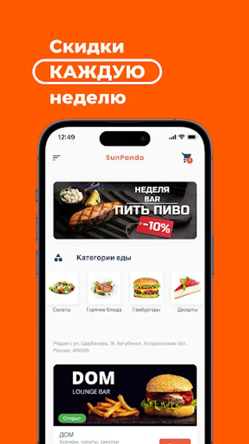 The SunPanda Simferopol application will help you order dishes from your favorite cafes and restaurants, and quickly arrange delivery to your home, office or pickup.