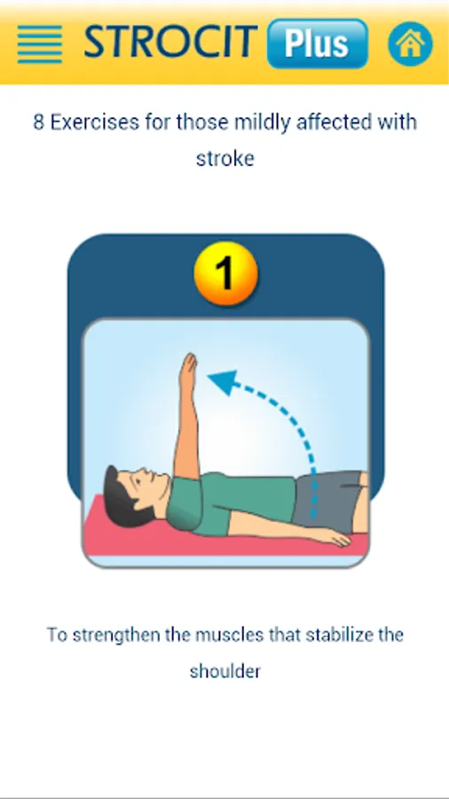 adapted from National Stroke Association. The app features exercises in video animation format along with easy to follow steps, thus offers an unique experience and excellent visual communication tool. Moreover these exercises are presented in 11 regional languages.