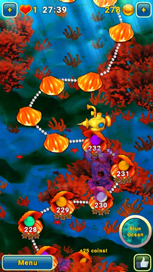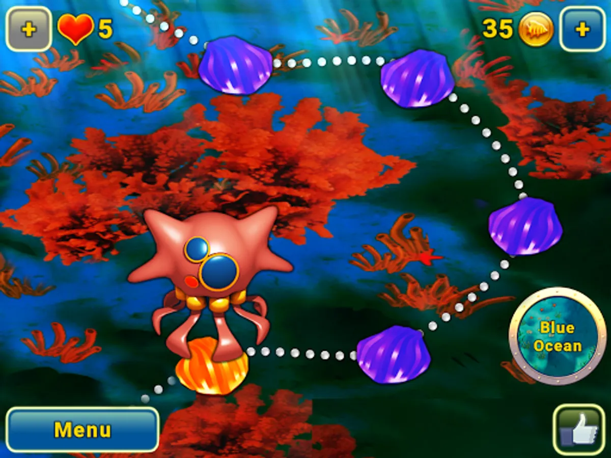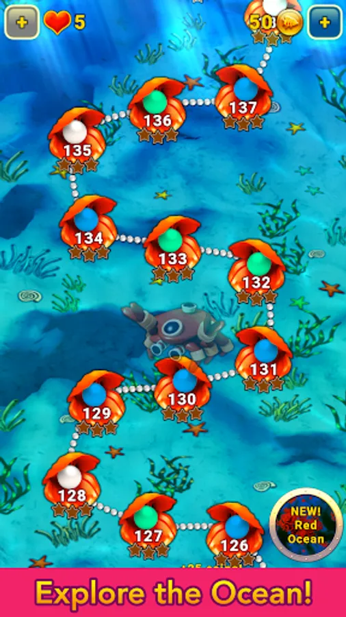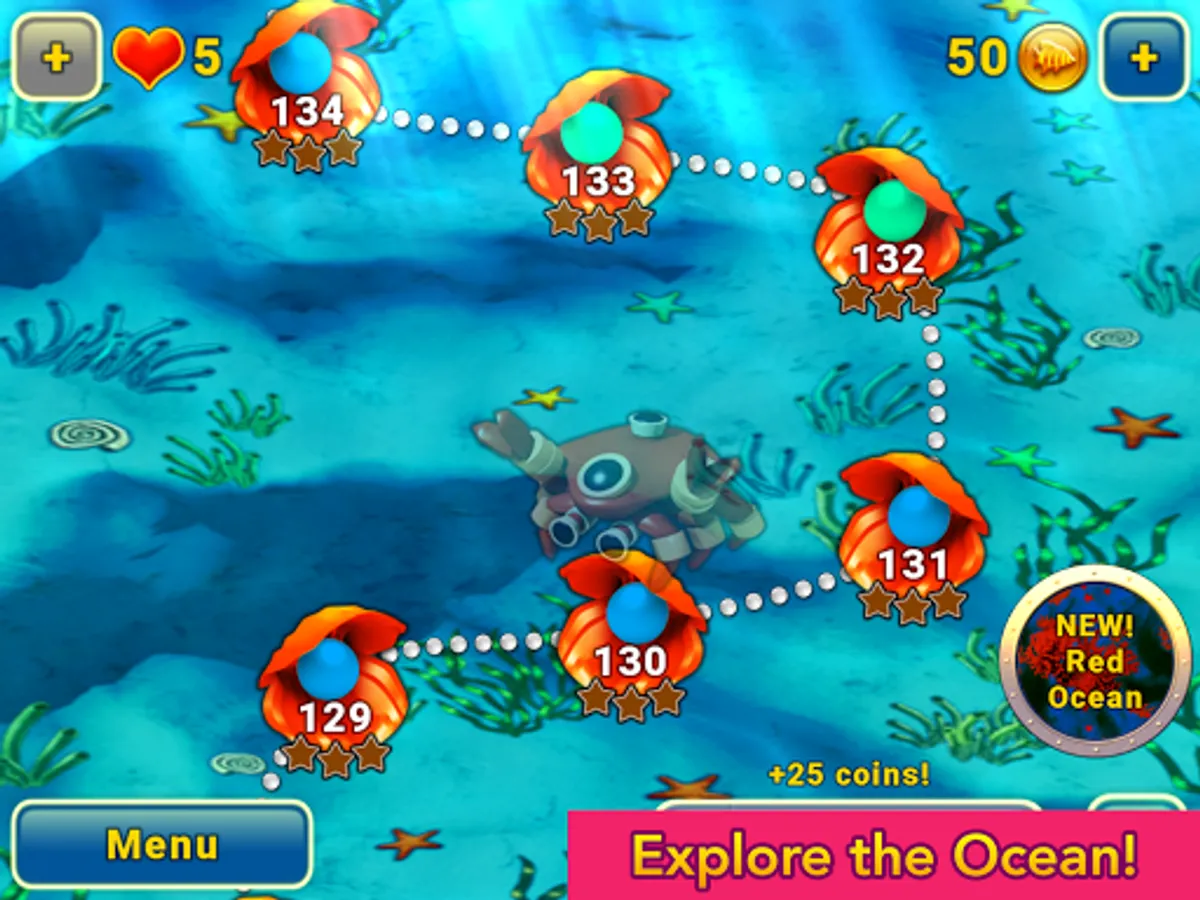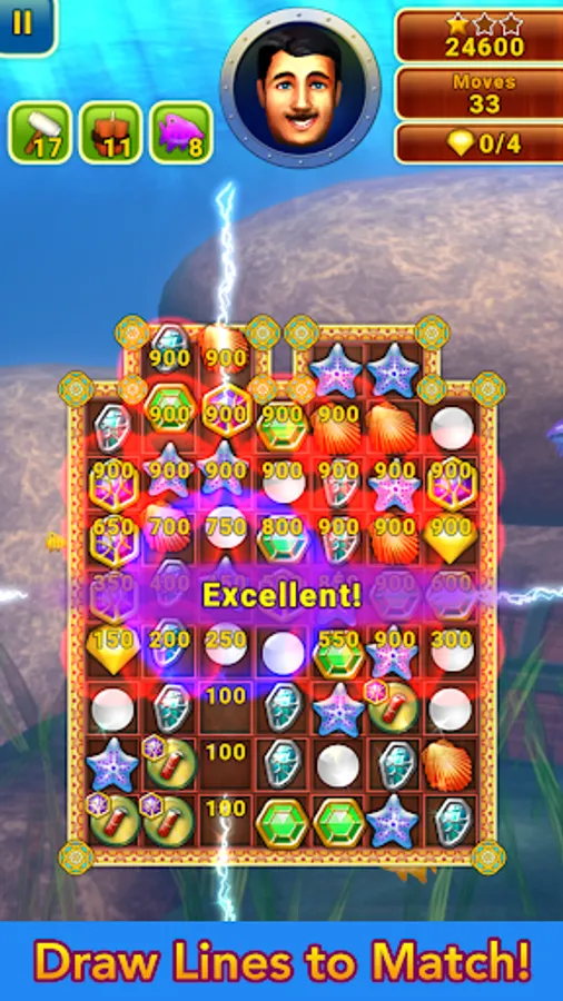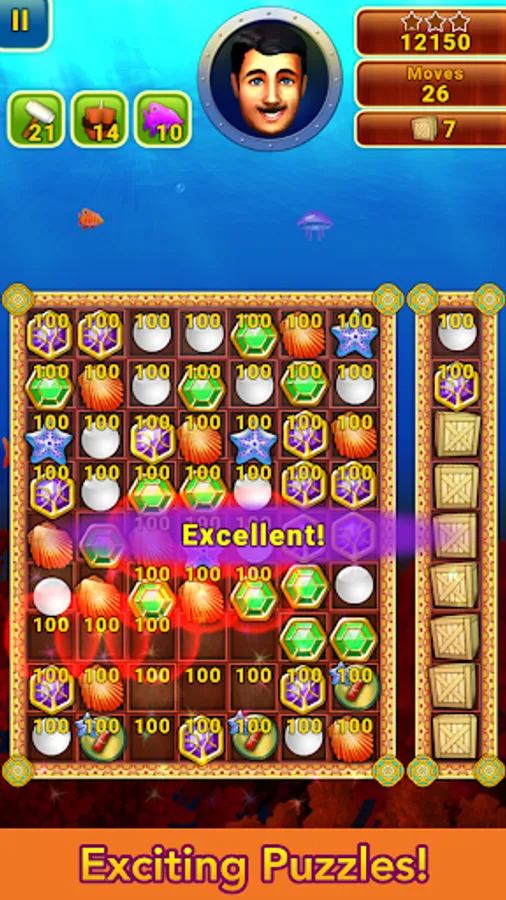 Step onboard the big submarine and wander the ocean. Collect hidden objects and treasures to destroy matching groups of three or more jewels. Acquire power-ups like Bomb and Lightning to improve your score. As a bonus, there's a brave captain to help you navigate the game. Explore the depths of the ocean in OceanuX, an underwater match-3 game.