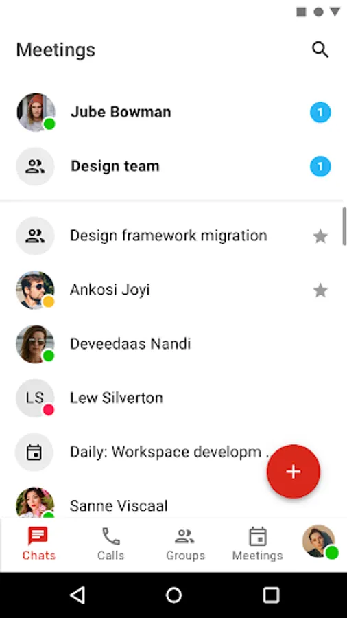 - Your colleagues are all gathered in one place. You can see their availability and decide whether a message or a call is the best way to communicate with them.