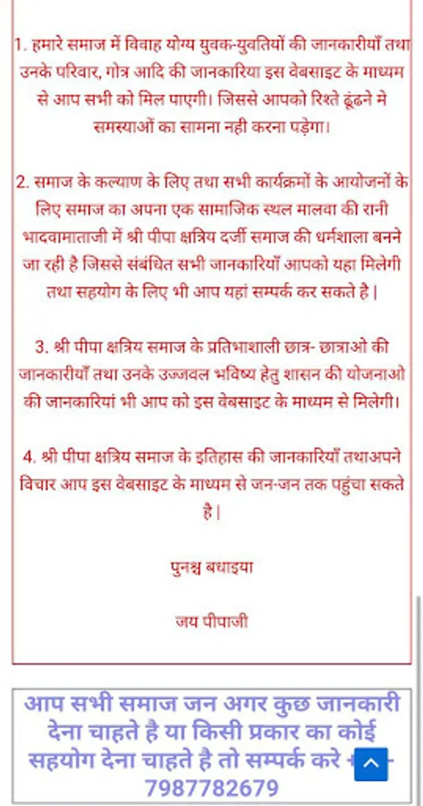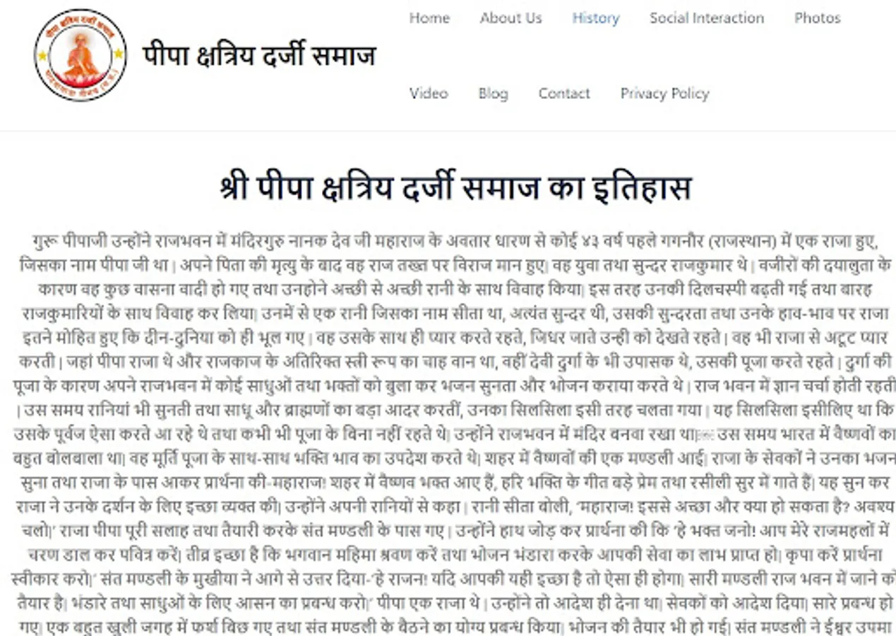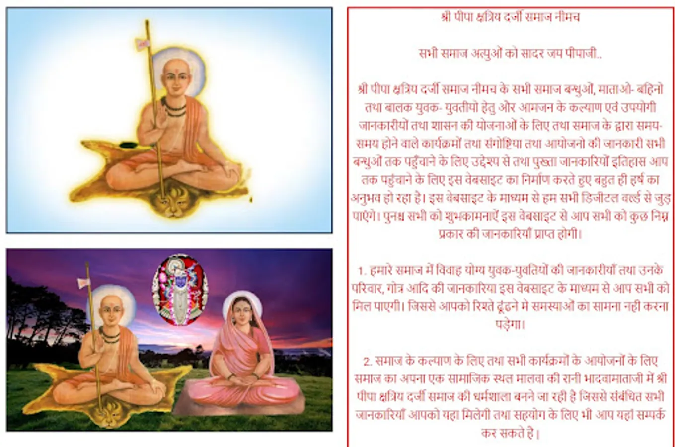 Shri Pipa Kshatriya Tailor Samaj Neemuch for all the society brothers, mothers-sisters and boys and girls and for the welfare and useful information and schemes of the general public and information about the programs and seminars and events organized by the society from time to time. It is a matter of great pleasure to create this website with the aim of making it accessible to the brothers and to provide concrete information and history to you. Through this website & Application, we will all be able to connect with the digital world.