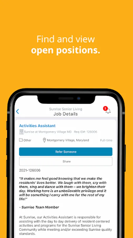 The Amplify team member referral platform allows you to stay in the loop about open jobs at Sunrise Senior Living communities. Easily apply, refer friends, share across social media accounts, and track the status of your referrals every step of the way.