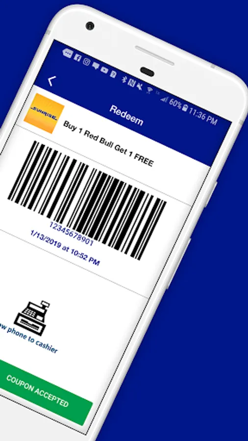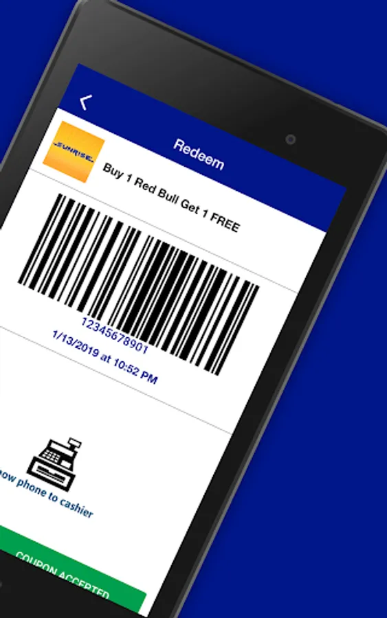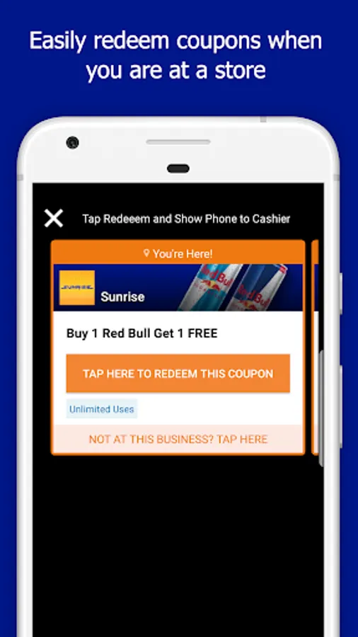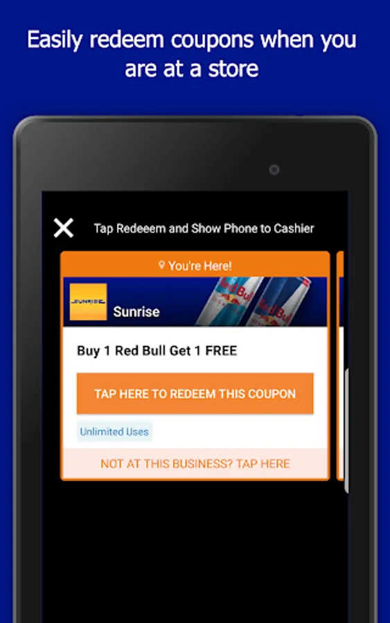 Simply tap the orange redeem button and show your phone at purchase to redeem your coupons.