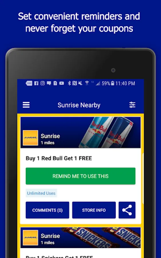 Special, limited time, offers are only accessible via this easy to use app powered by RoverTown. Find nearby stores and get notified of nearby coupons.