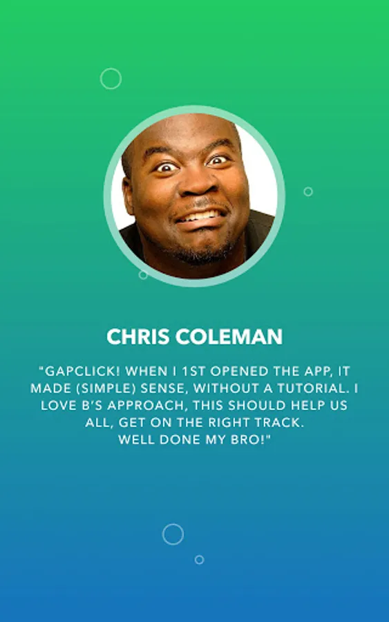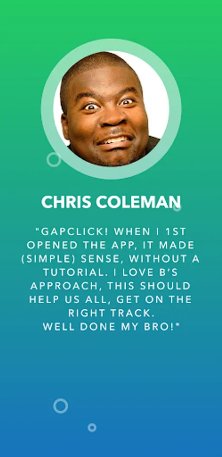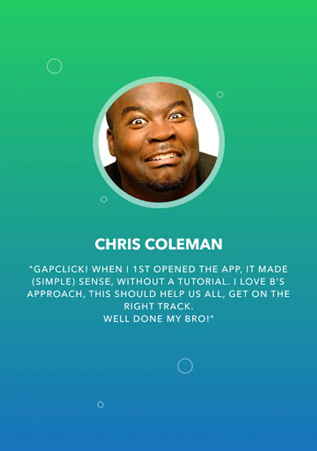 • "When I first opened the app, it made (simple) sense, without a tutorial." - Chris Coleman