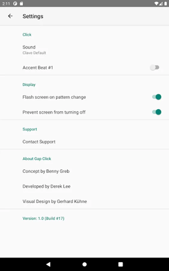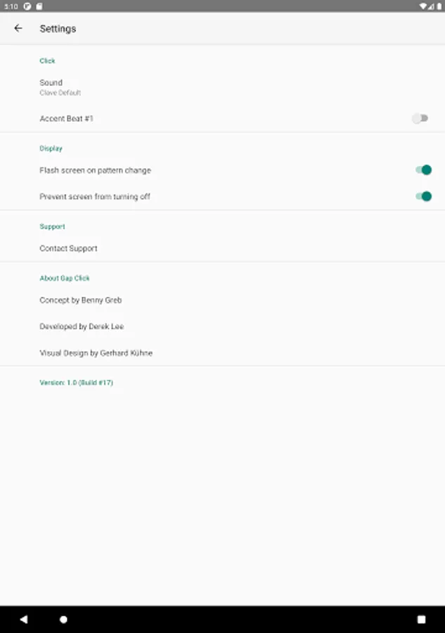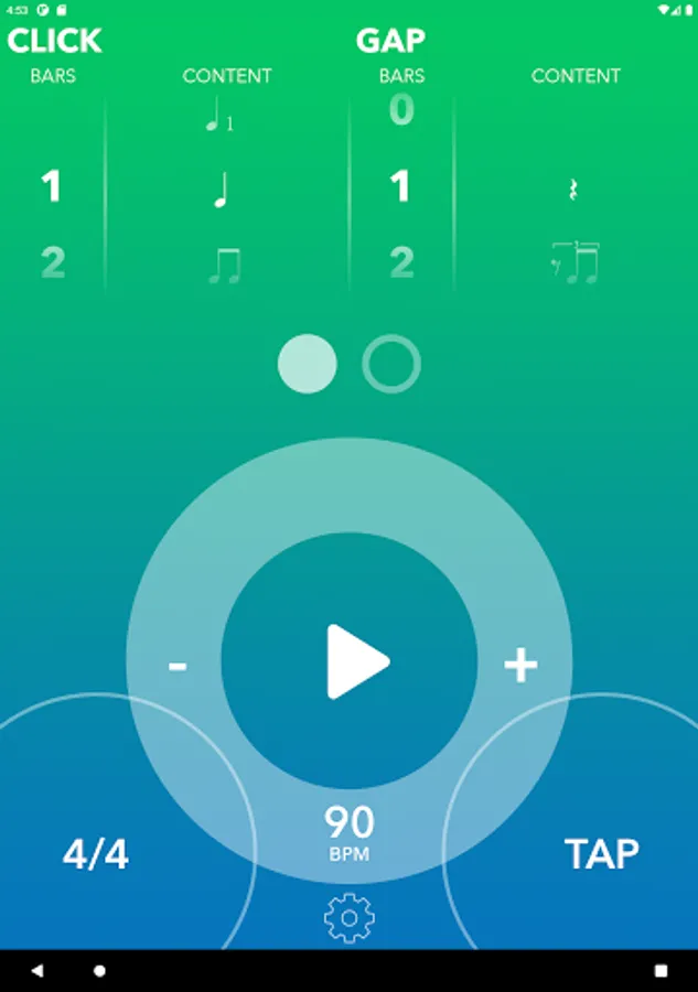 Both the “click” and the “gap” portion supports a variety of different syncopated patterns allowing you the ability to practice in binary or ternary rhythms - with more or less safety net depending on your settings.