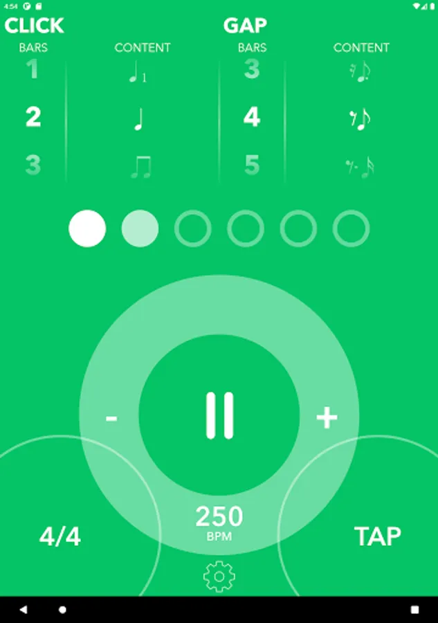 Unlike standard metronomes which simply state the time, Gap Click helps you improve your sense of time. Gap Click focuses on improving your ability to keep tempo, become more aware and comfortable with off beat clicks and by that, become bullet proof and accurate with all notes of the subdivision.